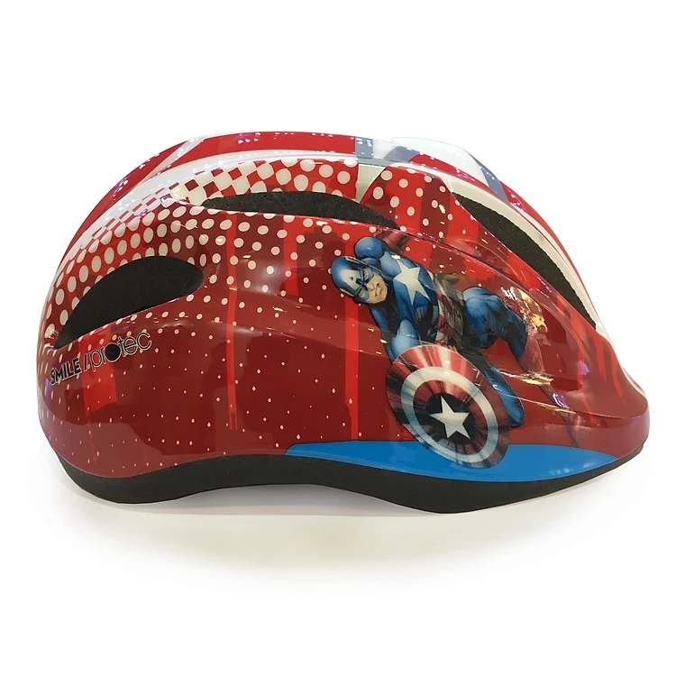 Mũ Bảo Hiểm Xe Đạp Trẻ Em Protec SMILE Họa Tiết Đội Trưởng Mỹ Có Vòng Điều Chỉnh Đầu, Có Đèn Chiếu Hậu An Toàn Phía Sau - Màu Đỏ là dòng sản phẩm mới ra mắt của Protec. Mũ đạt tiêu chuẩn Châu Âu với các lỗ thoáng khí và họa tiết ấn tượng sẽ làm bé yêu thích. Mũ bảo hiểm xe đạp trẻ em SMILE là dòng sản phẩm Cao Cấp mới ra mắt của Protec. Mũ đạt tiêu chuẩn Châu Âu với các lỗ thoáng khí và họa tiết ấn tượng, cùng độ an toàn cao sẽ làm các bậc Phụ Huynh hài lòng và trao gửi niềm tin.