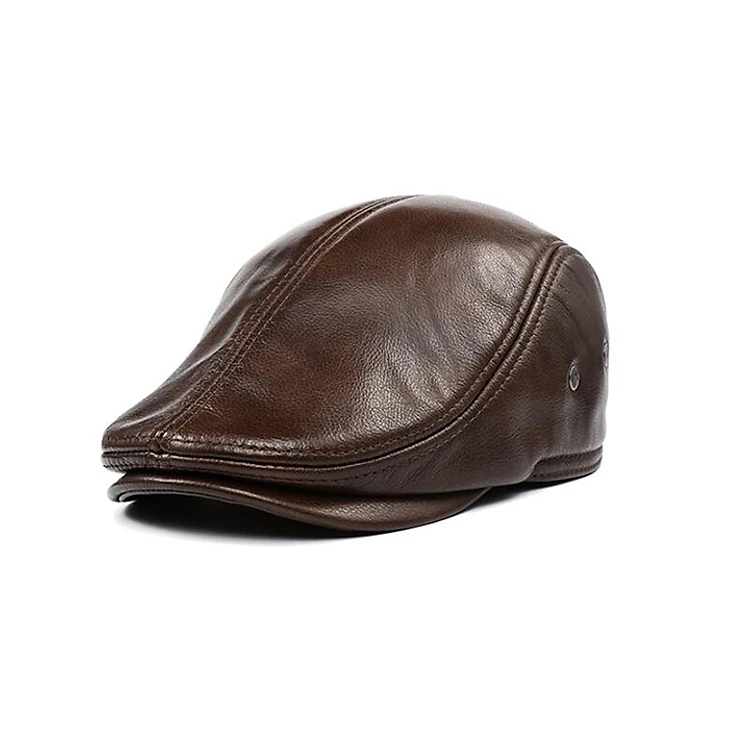 Mũ bê rê nam da bò có che tai BHY1971 Nón beret da trung niên có size, vừa vòng đầu 55-60cm