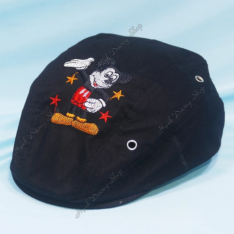Mũ bê rê trẻ em dành cho bé từ 2 đến 4 tuổi thêu hình chuột Mickey thời trang, có đuôi dán tăng giảm size như ý