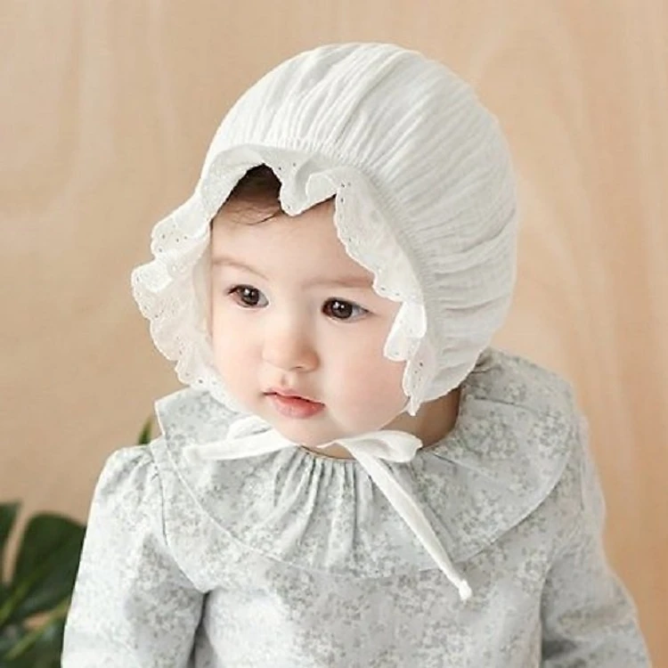 Mũ bèo ren chất liệu vải mềm mại với da đầu bé, thích hợp cho ngày năng động.