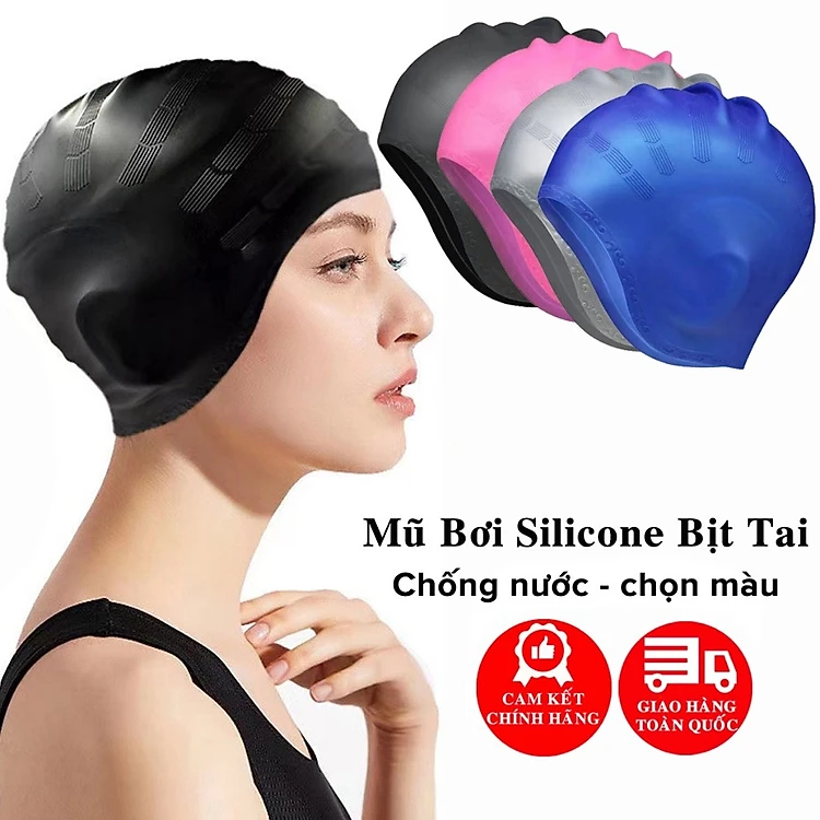 Mũ bơi người lớn chất liệu silicone cao cấp dododios dùng được cho nam, nữ ngăn nước, trùm được búi tóc dài - Mũ bơi trùm tai - Mũ bơi trùm búi tóc - Chính hãng dododios