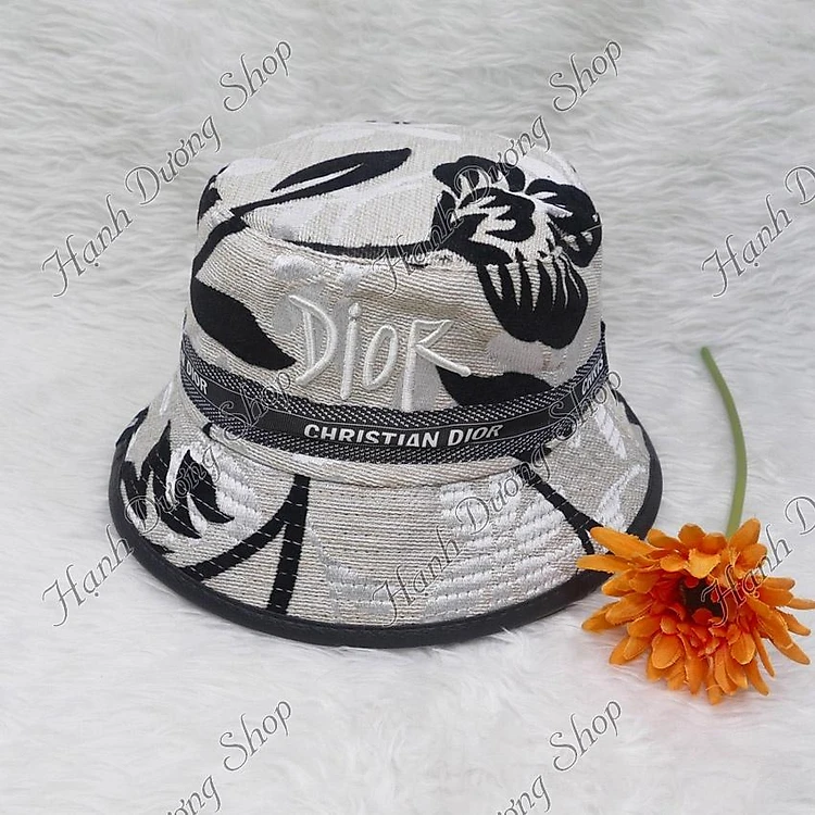 Mũ bucket bông vải bông lụa nón tai bèo vành tròn có may đai xung quanh, vành viền da, có may tem thời trang