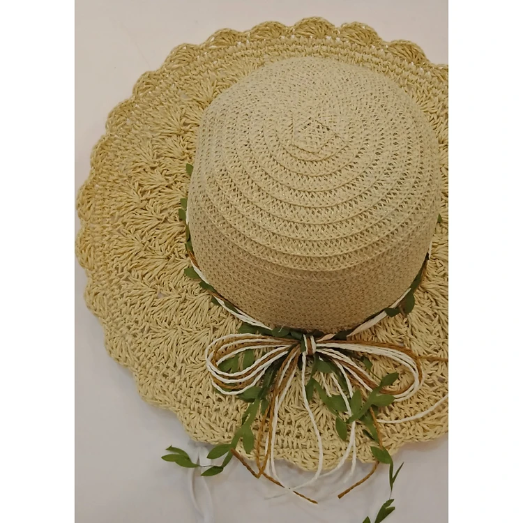 Mũ cói đi biển, Mũ cói vành rộng ( Màu kem)- Nikendo