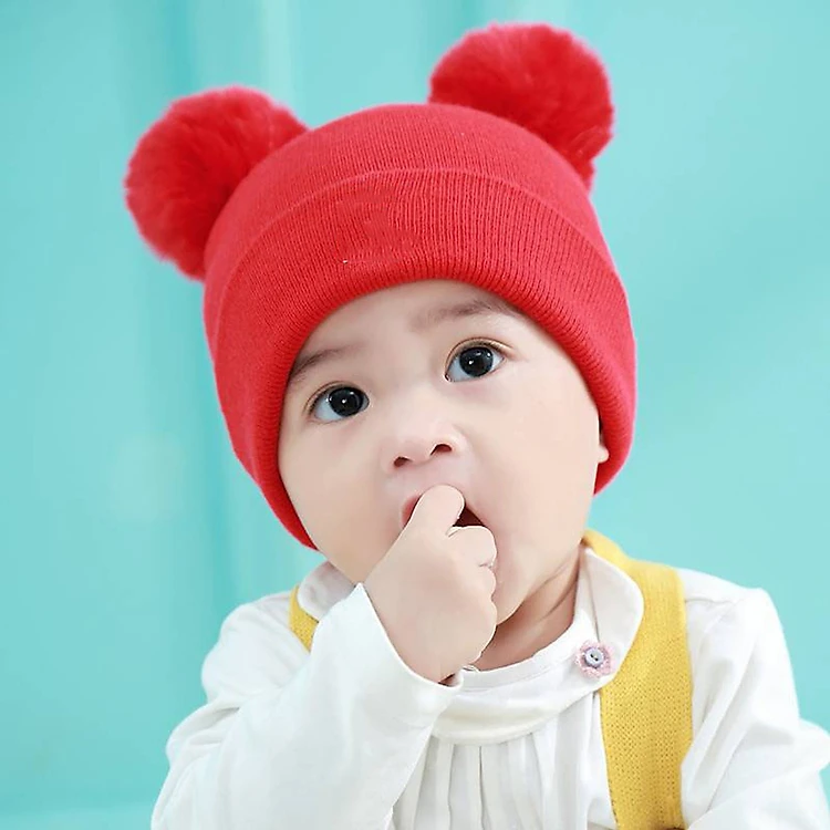 – Mũ len đính 2 quả bông nổi bật, giúp bé càng thêm yêu chiếc mũ xinh xắn của mình hơn.