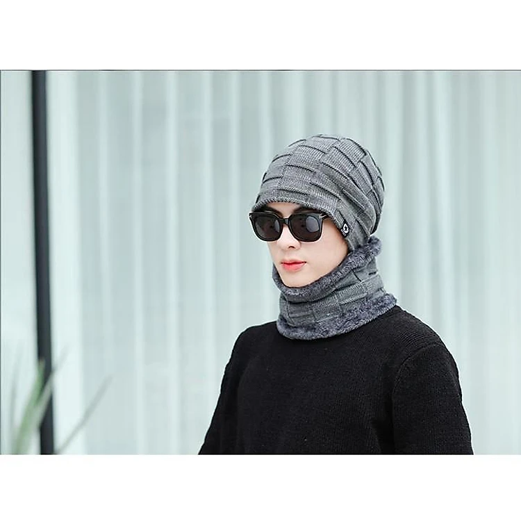 Mũ len kèm khăn - Mũ len khăn len cao cấp