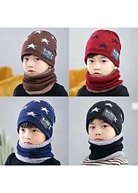 Mũ len ngôi sao cho bé trai và bé gái từ 2 - 8 tuổi kèm khăn ống quàng cổ, 2 lớp dày dặn giữ ấm vùng đầu , vùng tai và còn có khăn bảo vệ cả cổ bé trong thời tiết giá lạnh của mùa đông