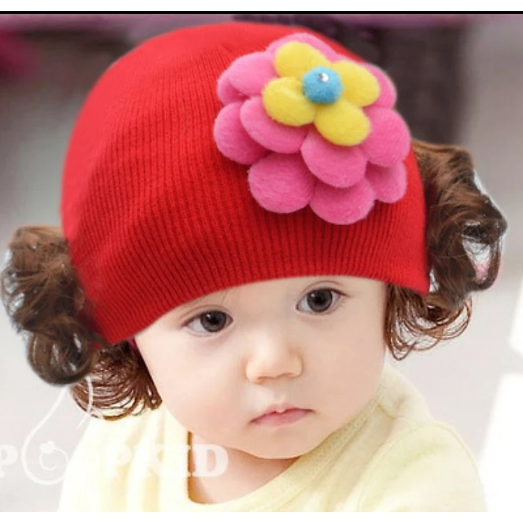 Mũ len nón len bé gái đáng yêu tóc giả xoăn xinh xắn dona22060501