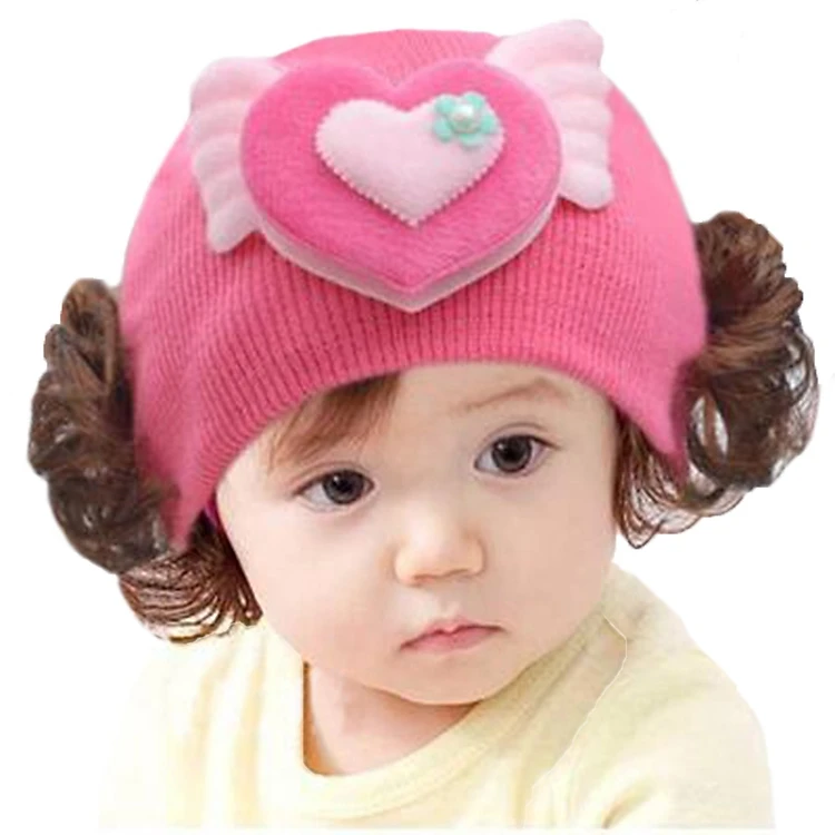 Mũ len tóc giả ngắn cho bé
