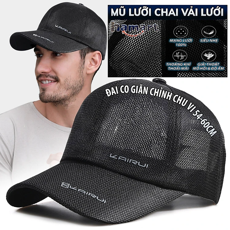 Mũ Lưới Che Nắng Unisex Nón Kết Lưỡi Chai Nam Nữ Vải Thoáng Khí Chống Nóng Ngoài Trời Mùa Hè