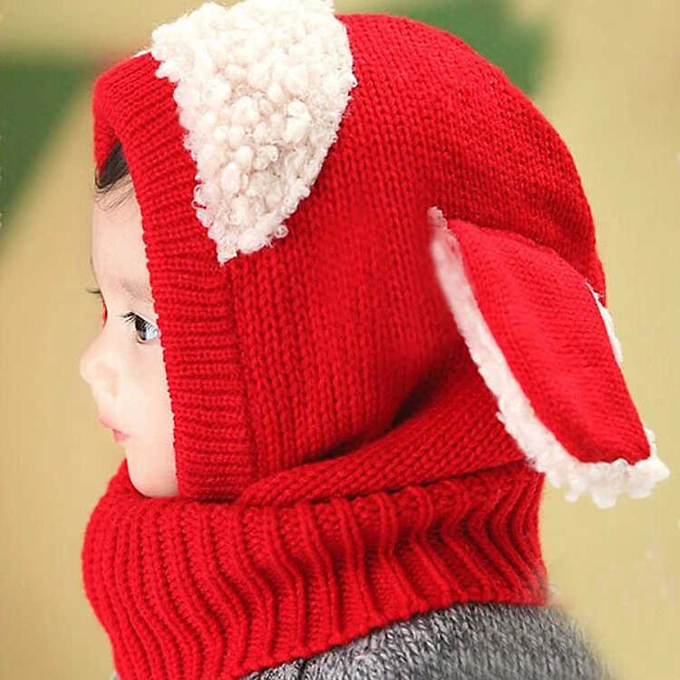 Dáng mũ len tai cừu ôm trọn lấy đầu của bé giữ ấm tai giúp bé không bị lạnh khi đi gió