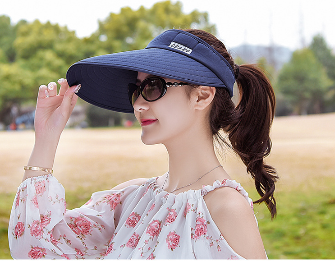 Nón rộng vành chống nắng nửa đầu màu xanh navy, mũ chống nắng rộng vành nữ
