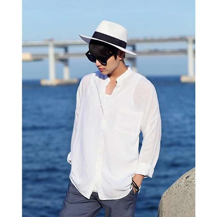 Mũ phớt cói cho nam thời trang nón phớt nam bằng cói đi biển màu trắng