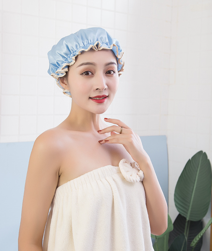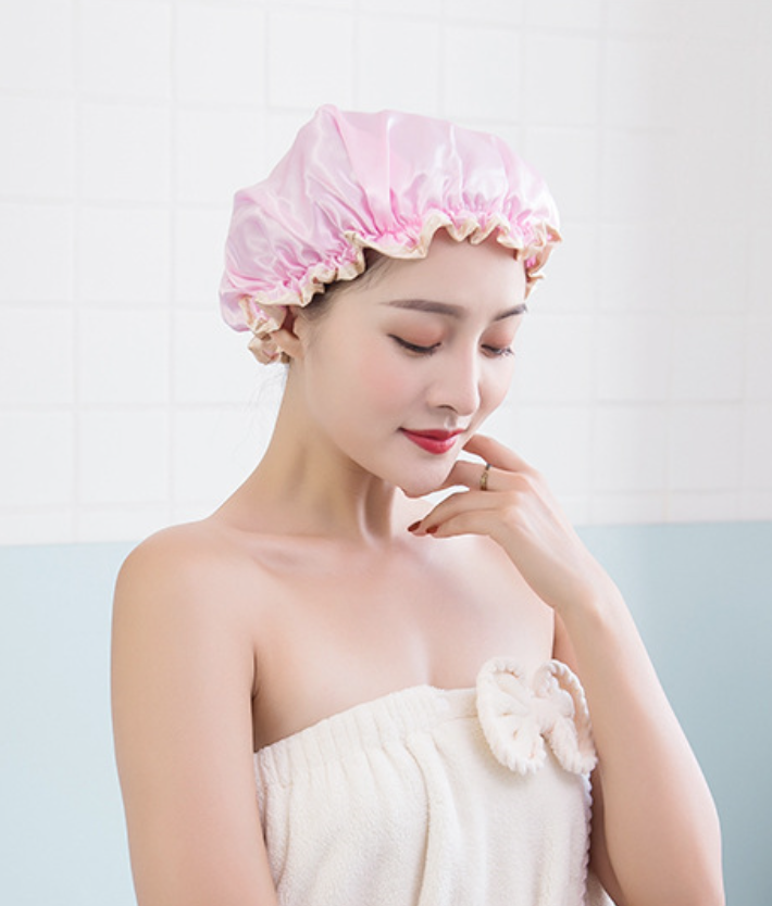 Nón tắm trùm đầu xinh xắn khi tắm - Sản phẩm tiện lợi cho bạn khỏi lo tóc ướt khi tắm hoặc thỏa thích chăm sóc cho mái tóc của mình. Nón trùm đầu được làm bằng chất liệu lụa mền có lớp chống thấm, giúp bạn bảo vệ tóc khỏi ướt khi tắm, rửa mặt…