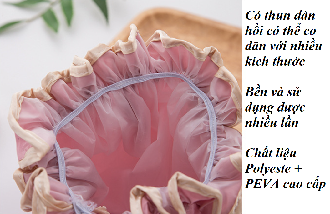 Phần dưới nón có thun bo co giãn linh hoạt, vừa vặn với nhiều vòng đầu. Nón trùm đầu còn giúp bạn ủ dưỡng tóc, cho mái tóc khỏe đẹp, bóng mượt. Cực phù hợp cho những bạn sau khi duỗi thẳng tóc giúp tóc không bị gãy và cong