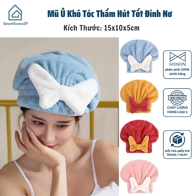 Mũ Ủ Khô Tóc Thấm Hút Tốt Đính Nơ Siêu Xinh T888 T6 - HÀNG CHÍNH HÃNG MINIIN