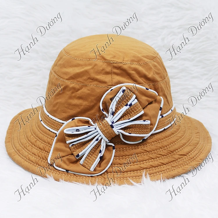 Mũ vành rộng nữ gắn nơ 2 cánh viền dễ thương độc đáo, vành rộng 7cm , chất liệu vải cao cấp - Hạnh Dương