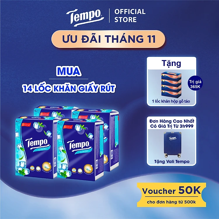[MUA 14 LỐC TẶNG 1 LỐC KHĂN HỘP] Khăn Giấy Rút Tempo 4 Lớp Bền Dai Thương Hiệu Đức