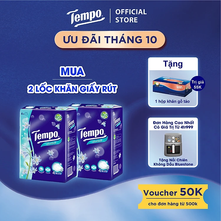 [MUA 2 LỐC TẶNG 1 HỘP KHĂN GIẤY] Khăn giấy rút cao cấp Tempo Softpack - 4 lớp bền dai, an toàn cho da - Thương hiệu Đức (4 gói/Lốc)
