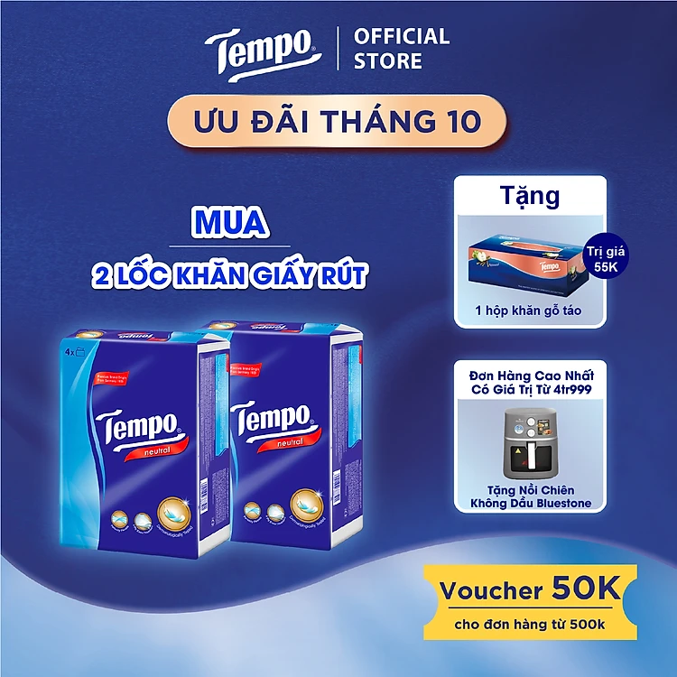![[MUA 2 LỐC TẶNG 1 HỘP KHĂN GIẤY] Khăn giấy rút cao cấp Tempo Softpack - 4 lớp bền dai, an toàn cho da - Thương hiệu Đức (4 gói/Lốc)](https://salt.tikicdn.com/cache/750x750/ts/product/90/38/57/9113a32b39d79047d859c49fbf736a73.jpg)
