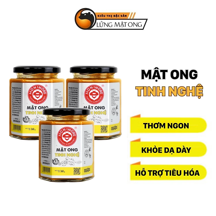 Combo 3 hũ Mật ong rừng tinh nghệ Honimore 360g - giúp hỗ trợ cải thiện dạ dày