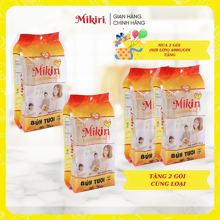 MUA 2 TẶNG 2 - Bộ 4 gói Bún gạo tươi Mikiri sấy khô 400g sợi lớn sợi nhỏ - Bún khô Mikiri cao cấp nguyên liệu nấu ăn