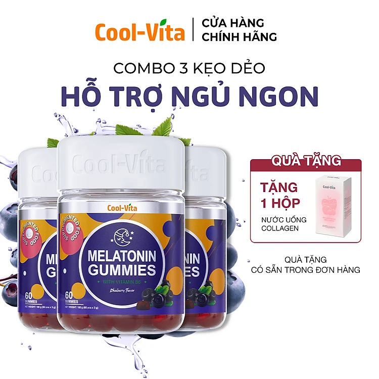 [Mua 3 tặng 1] Combo 3 Hộp Kẹo Dẻo Melatonin Hỗ Trợ Giấc Ngủ Ngon Coolvita - (Tặng 1 Hộp Nước uống Bổ Sung Collagen)