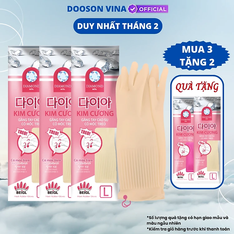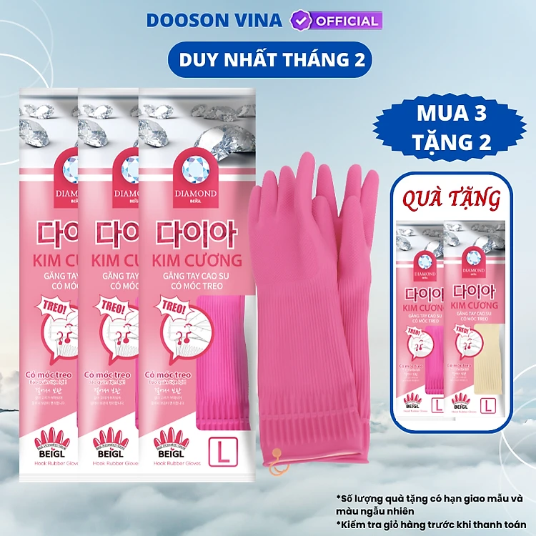 Mua 3 Tặng 2 - 2 Đôi Găng Tay Cao Su Tự Nhiên Kim Cương L