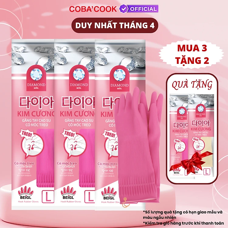 [Mua 3 Tặng 2] Combo3 Đôi Găng Tay Cao Su Tự Nhiên Kim Cương Có Móc Hàn Quốc L-39cm