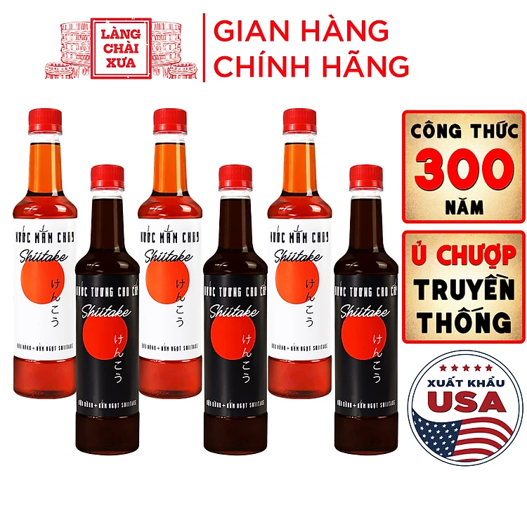 Đặc Sản Phan Thiết - Combo 3 Nước Tương Shiitake và 3 Nước Mắm Shiitake Chai Nhựa Cao Cấp 525Ml Từ Nấm Ngọt Shiitake Và Đậu Nành Nhật Bản