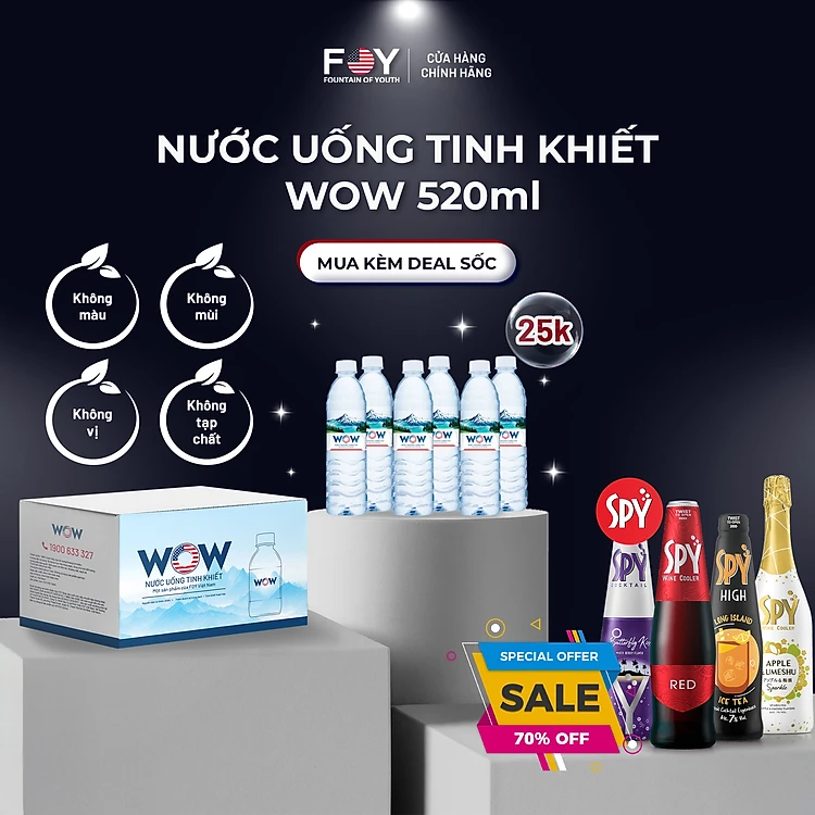 Lốc 6 Chai Nước tinh khiết WOW loại 520ml