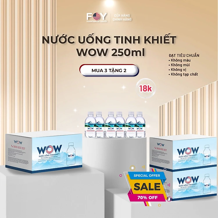 Lốc 6 Chai Nước tinh khiết WOW loại 250ml