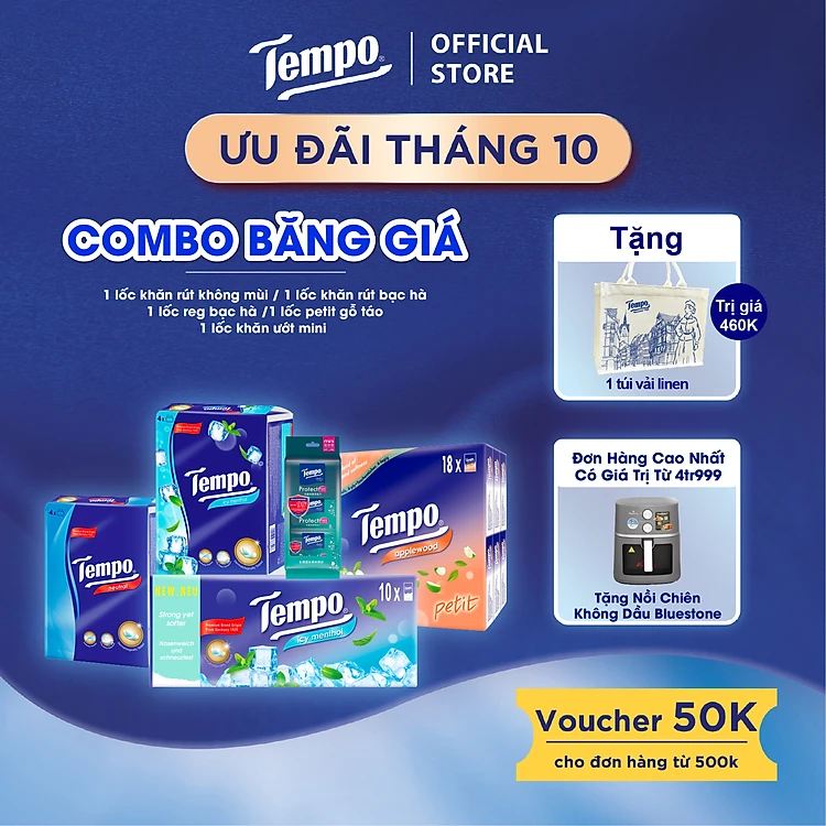 [MUA COMBO (1 LỐC KHĂN GIẤY RÚT KM+1 LỐC KHĂN RÚT BẠC HÀ + 1 LỐC REG BH + 1 LỐC PETIT GỖ TÁO + 1 LỐC KHĂN ƯỚT) TẶNG 1 TÚI LINEN ] Khăn Giấy Cao Cấp, Thương Hiệu Đức - An Toàn Cho Da
