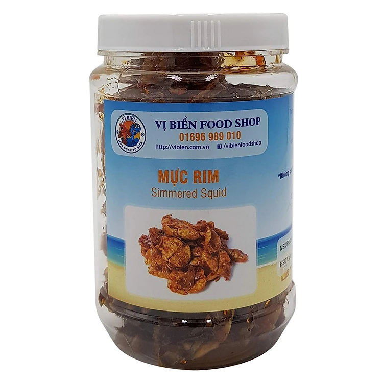 - Mực Rim Vị Biển Food Shop được chọn từ nguồn khô mực loại ngon, nhỏ nhưng chắc thịt, mình dày, mực được làm sạch, nướng sơ, cán mỏng ướp gia vị (muối, đường, me sa tế, ớt…) cho thấm rồi đem rim trên lửa nhỏ cho đến khi cạn.