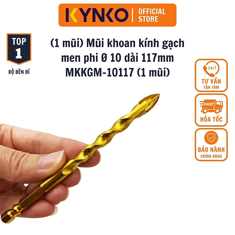 MŨI KHOAN KÍNH - GẠCH MEN 4 CẠNH, CHÂN LỤC GIÁC KYNKO ĐƯỜNG KÍNH PHI Ø 10 DÀI 117MM MKKGM- 10117 (VỈ 10 CHIẾC)
