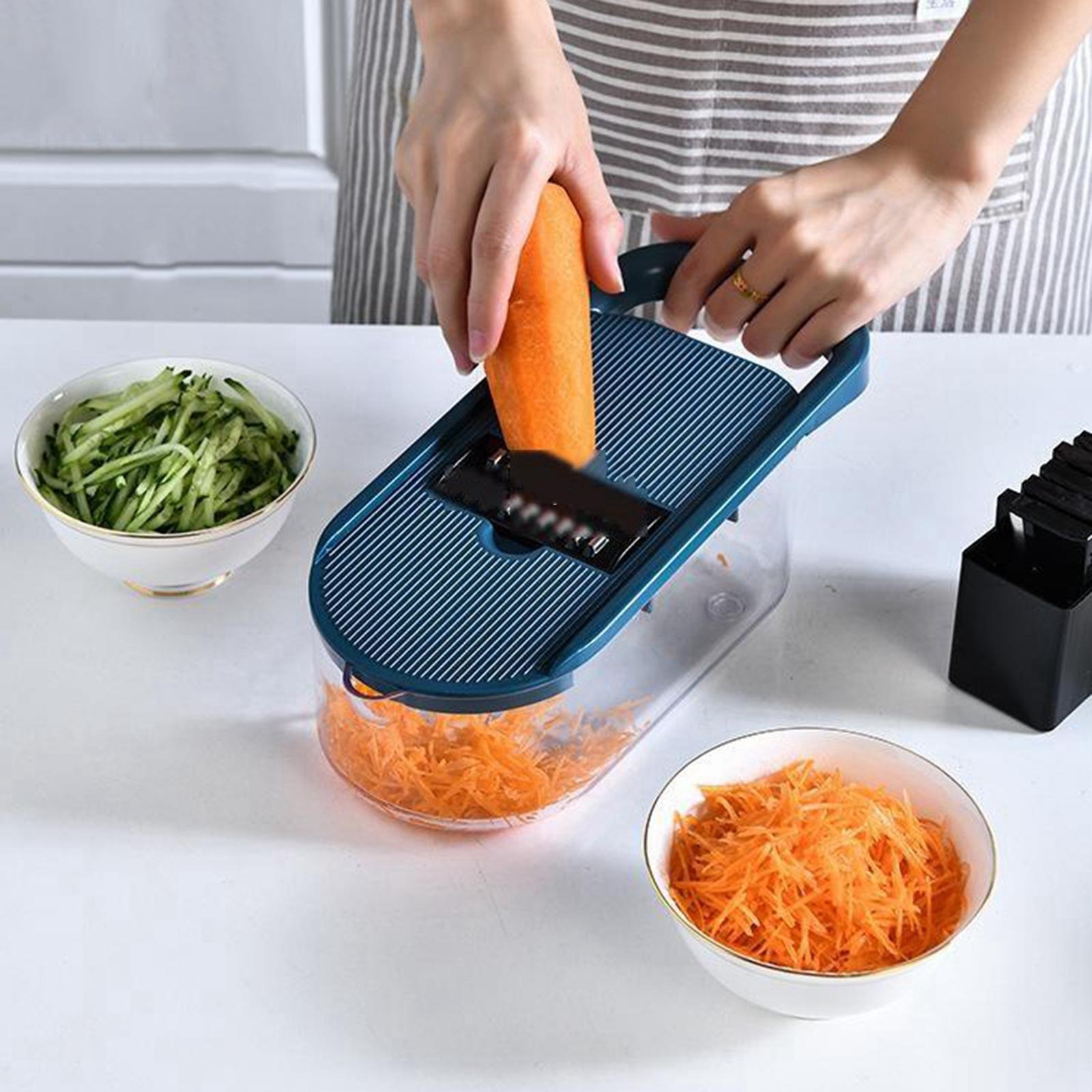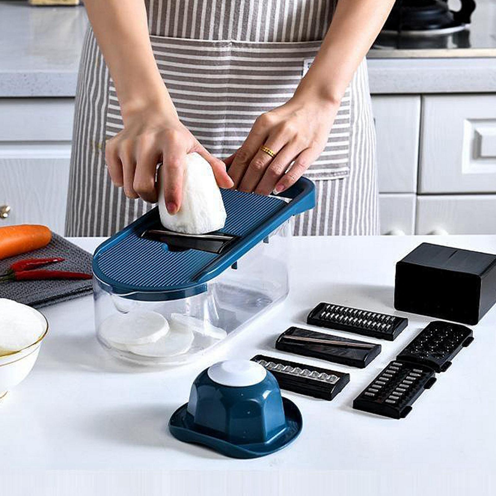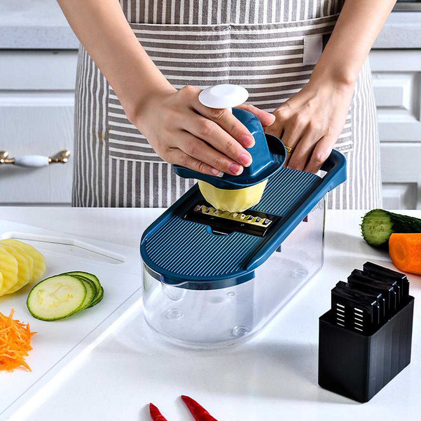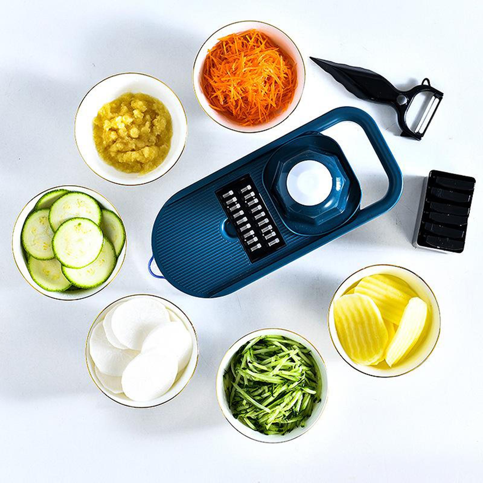 With 6 replaceable stainless steel blades. these blades can cut through all kinds of vegetables, cheese, slice potatoes and cut fruits, and even make paste vegetables or mashed potatoes.
