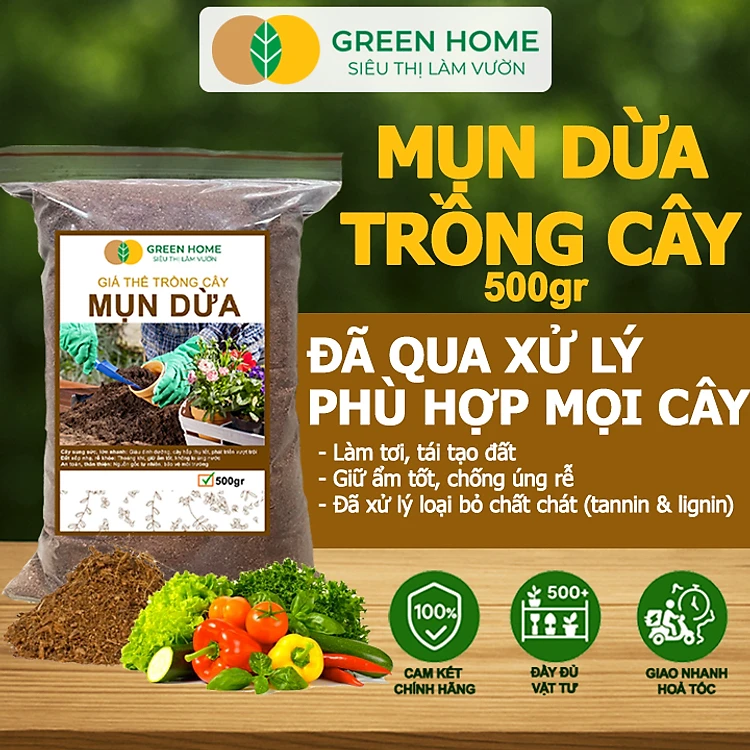 Mụn Xơ Dừa Greenhome, Sfarm, Bao 500GR, Đã Qua Xử Lý, Chuyên Trồng Rau, Hoa Màu, Dâu Tây, Cây Ăn Trái, Thủy Canh