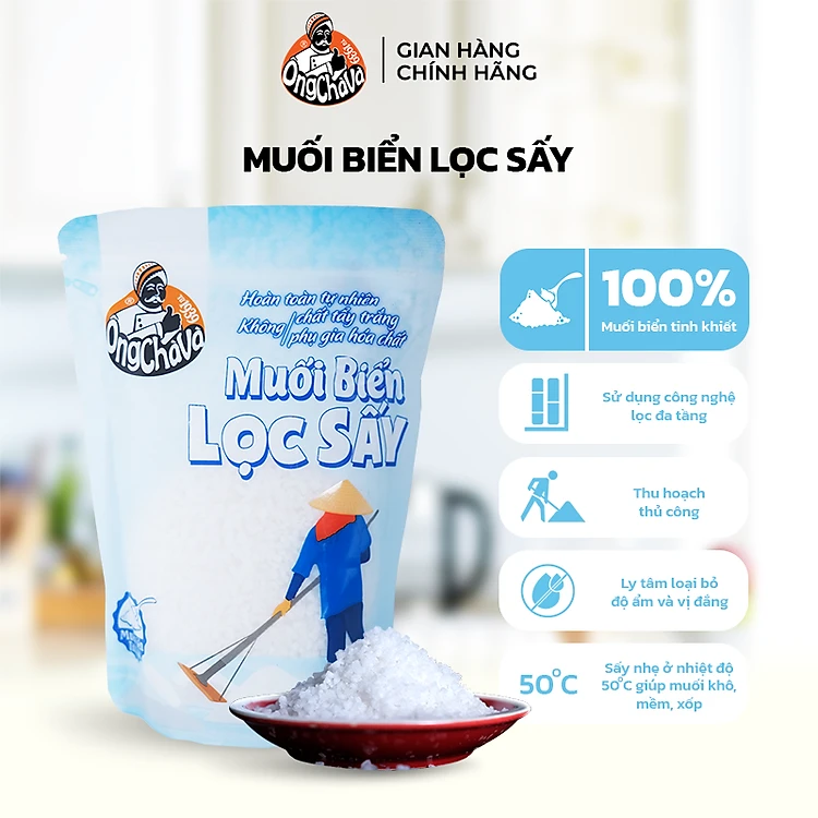 Kết tinh từ vùng biển Bạc Liêu trong lành, Muối Biển Lọc Sấy Ông Chà Và là thành quả của quy trình lọc rửa – ly tâm – sấy nhẹ hiện đại, kết hợp cùng nguồn nguyên liệu 100% tự nhiên. Hạt muối trắng sáng, mềm xốp, dễ tan – giữ trọn khoáng chất từ biển, vị mặn dịu nhẹ, không chát, hoàn hảo cho mọi món ăn hàng ngày. Đây là loại muối lý tưởng cho người ăn nhạt, gia đình có trẻ nhỏ hoặc người quan tâm đến sức khỏe.