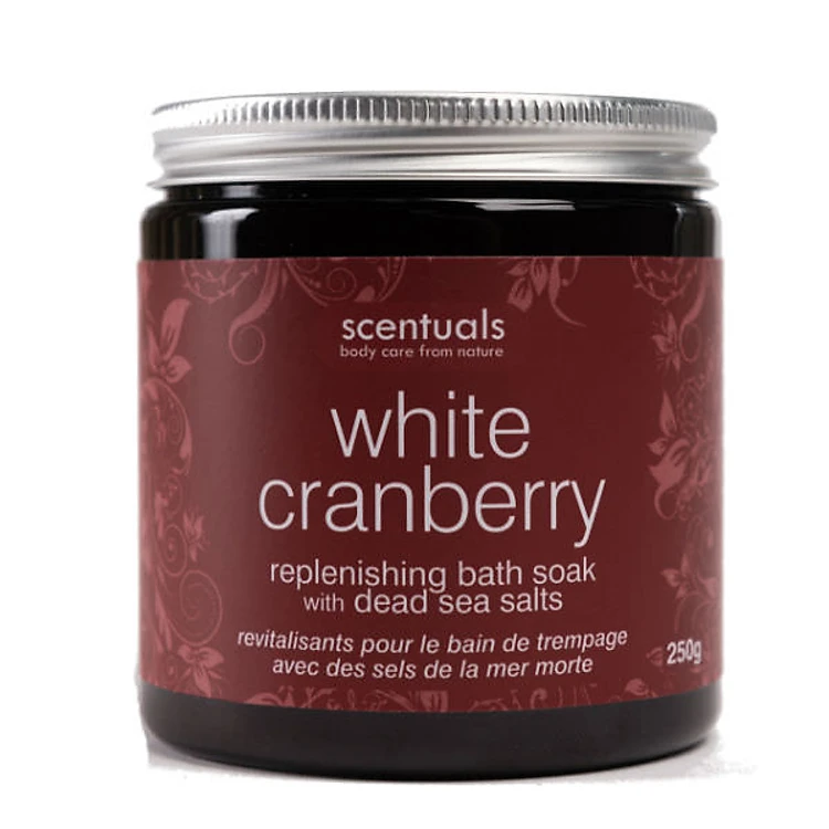 Muối Biển Tắm Ngâm Nam Việt Quất White Cranberry Replenishing Bath Soak With Dead Sea Salts Scentuals (250g)