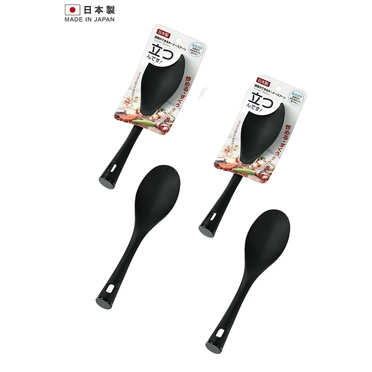 Muôi cơm kháng khuẩn cán dài Echo Metal 25cm màu đen - Nội địa Nhật Bản