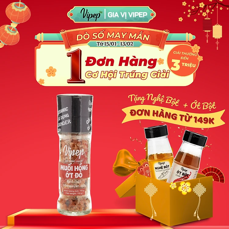 Muối Hồng Himalaya Ớt Đỏ Tự Nhiên Cối Xay Vipep Hũ Thủy Tinh 110g