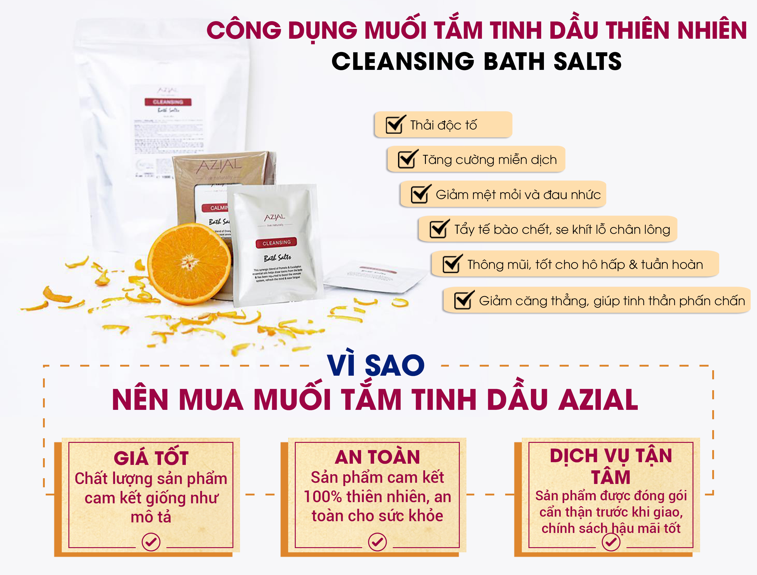 Muối tắm tinh dầu 100% thiên nhiên AZIAL Cleansing Bath Salts