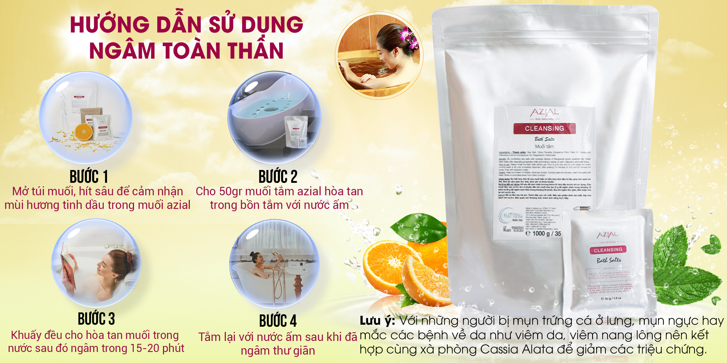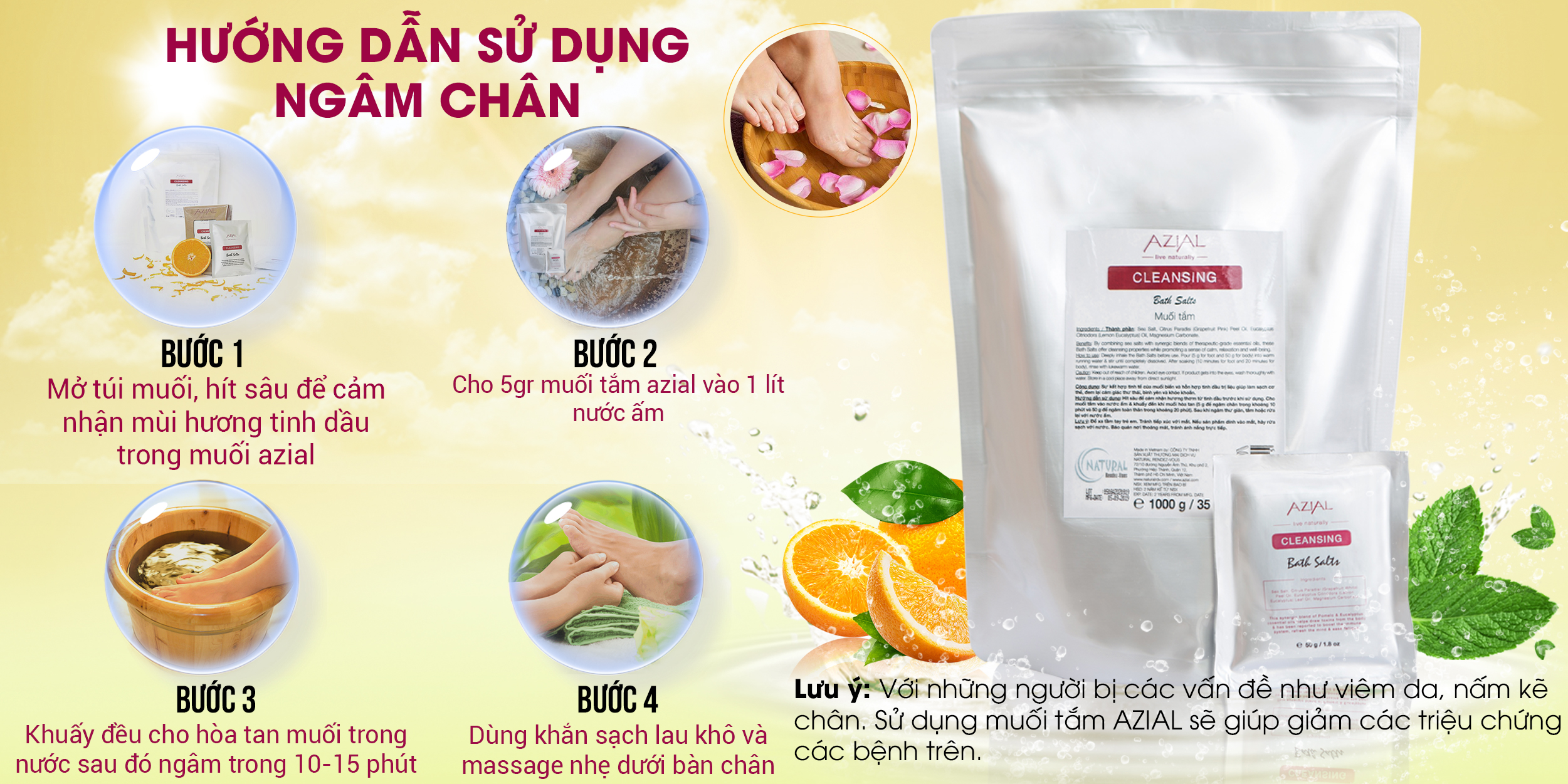 Muối tắm AZIAL chỉ dùng NGÂM CHÂN và NGÂM TOÀN THÂN.