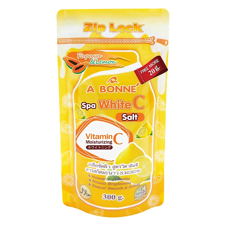 - Muối Sữa Spa A Bonne' Vitaminc APM.00015 (300g) giúp làm trắng và dưỡng ẩm tự nhiên, với tinh chất vitamin C từ chanh giúp tẩy sạch bụi bẩn và tế bào chế trên các vùng da cơ thể, mang đến cho bạn một làn da mới trắng hồng rạng rỡ.