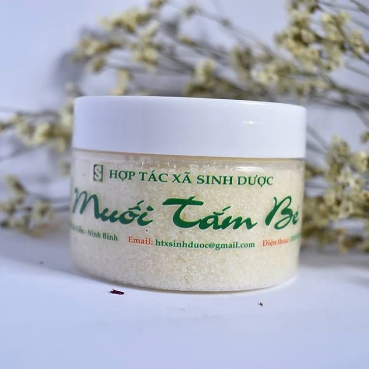 Muối tắm thảo dược sản xuất bởi HTX Sinh Dược nơi mà được hàng trăm nghìn bố mẹ tin tưởng.