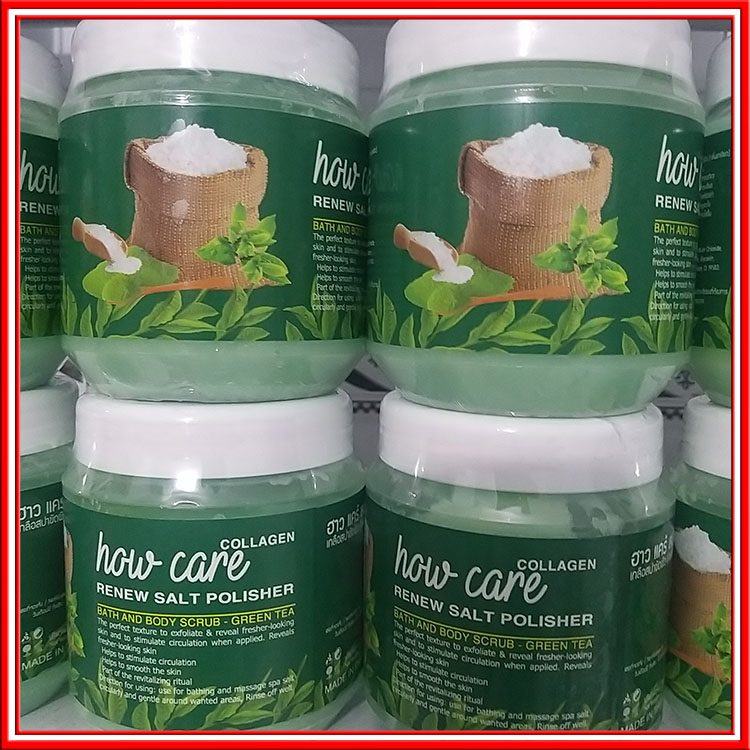 Muối Tắm Trắng Da Collagen - Làm Sạch Tế Bào Chết - Ngừa Mụn Lưng - Viêm Nang Lông - Mờ Thâm Nám Tàn Nhang - Trà Xanh Howcare Thái Lan  700g