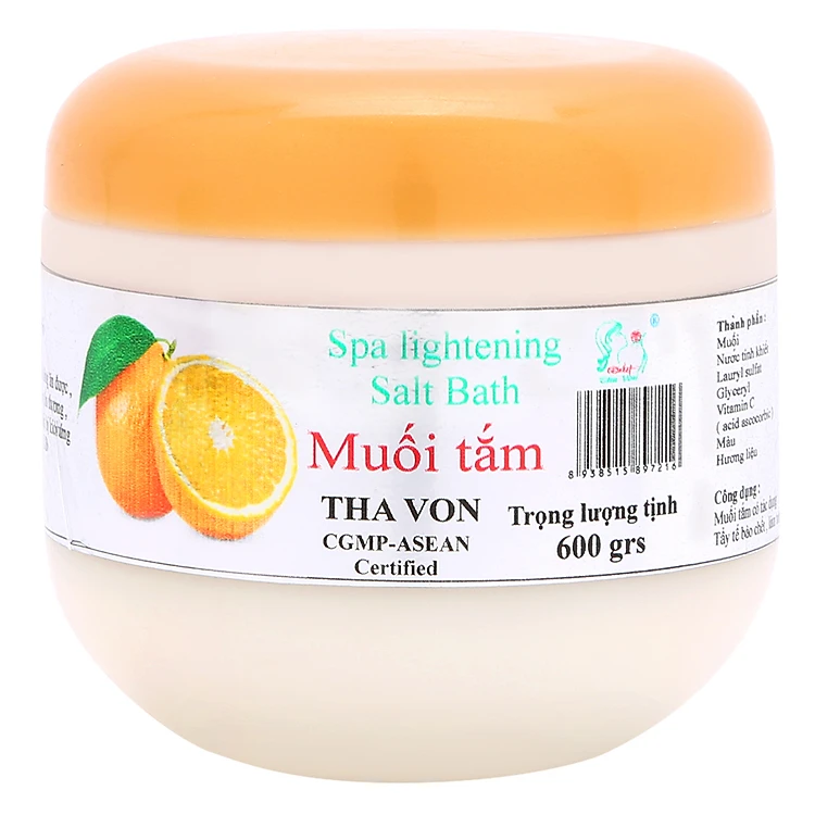 Cho vào tay một lượng muối tắm vừa đủ, thoa lên toàn thân hay những vị trí cần tẩy tế bào chết Massage nhẹ nhàng