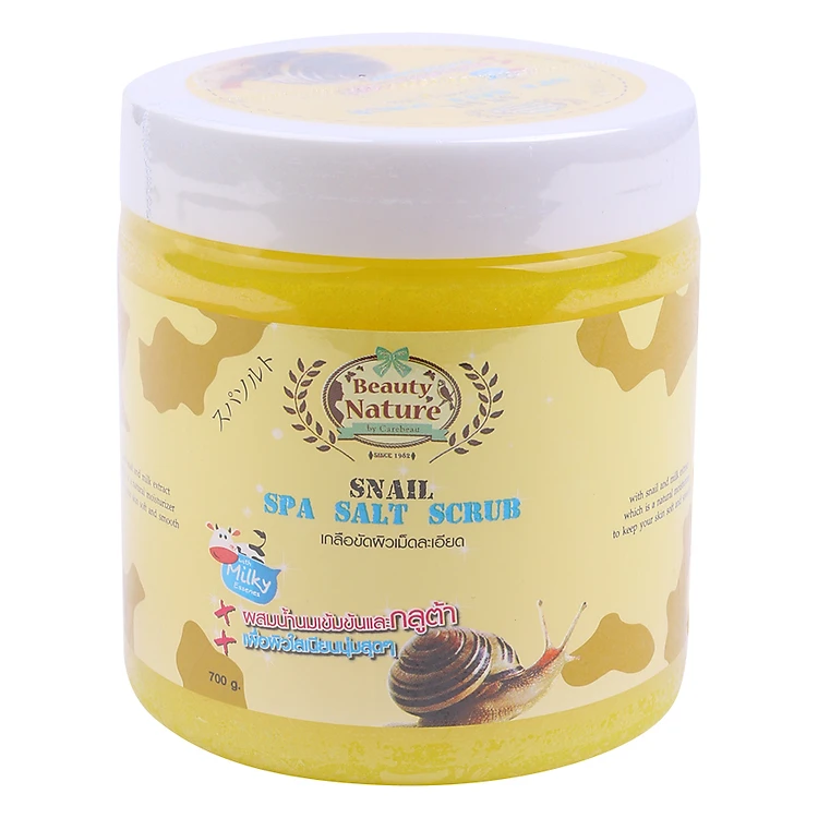 - Muối Tắm Spa Ốc Sên Beauty Nature Snail Spa Salt Scrub (700g) là sản phẩm chứa dưỡng chất chiết xuất từ ốc sên và sữa kết hợp với Muối Spa tự nhiên, có tác dụng tẩy tế bào da chết trên cơ thể cung cấp dưỡng ẩm giúp da mềm mại và mịn màn cùng hương thơm nhẹ nhàng.
