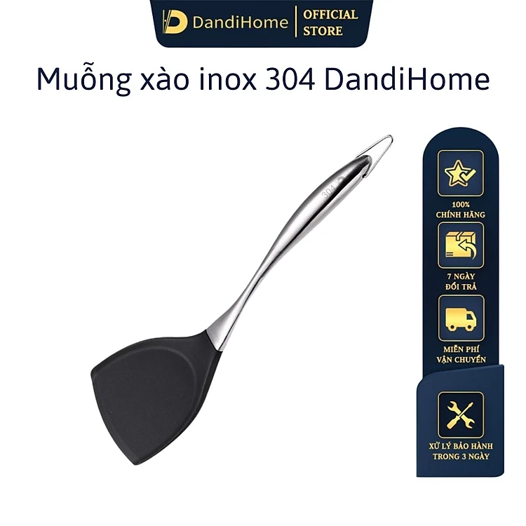 Muỗng xào DandiHome Inox 304 kết hợp bề mặt muỗng silicon cao cấp - chịu được nhiệt độ cao, an toàn với chảo chống dính