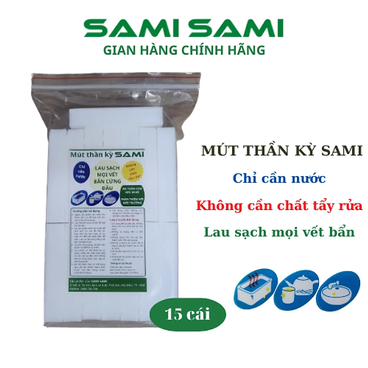 Mút thần kỳ SAMI, mút bọt biển melamin độ nén cao lau chùi làm sạch mọi vết bẩn cứng đầu (gói 15 miếng)