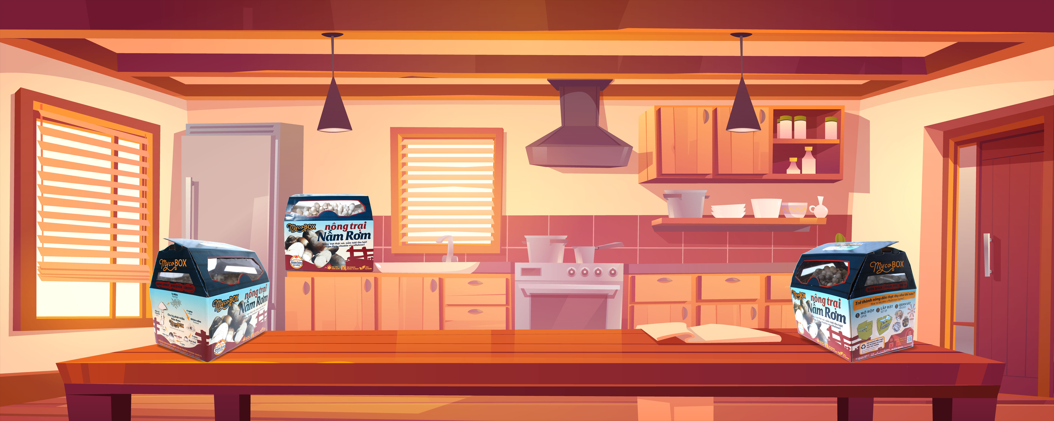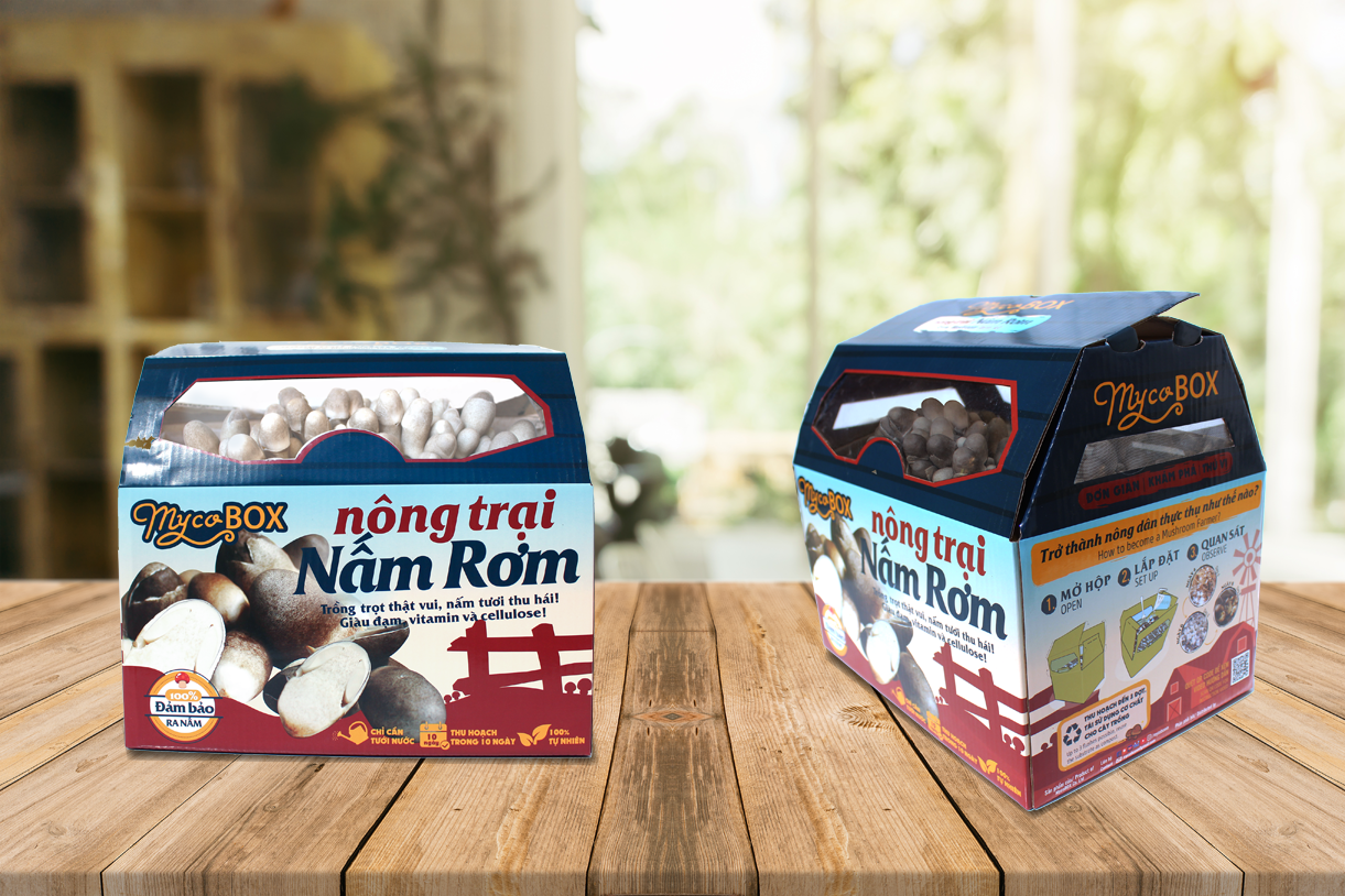 MycoBOX - Nông trại Nấm Rơm để bàn đầu tiên tại Việt Nam và trên Thế Giới có thể đặt tại nhiều vị trí trong nhà, gian bếp, bàn làm việc hay ở góc phòng.